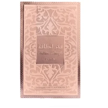 فاطمة بينك – باقة زهور عصرية، هذه الرائحة مليئة بالتفاصيل الدقيقة مع مزيج من النغمات الحلوة والحسية. يتألق هذا العطر بتوافقات زهرية، حيث تهيمن عليه رائحة الورد والياسمين مع مزيج من الروبارب، البرغموت، وجوزة الطيب. الفانيليا تبرز الحسية في التكوين في القاعدة مع المسك، العنبر، والفاتيفير.